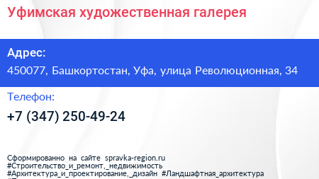 Уфимская художественная галерея по адресу 450077, Башкортостан, Уфа, улица Революционная, 34 в дальнейшем Организация, размещена в следующих категориях: