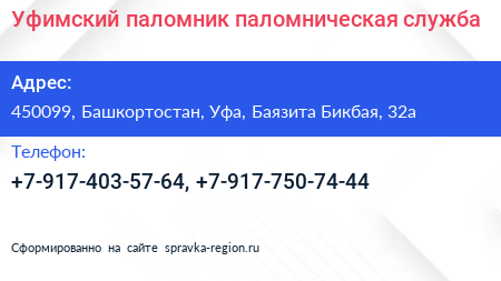Уфимский паломник, паломническая служба по адресу 450099, Башкортостан, Уфа, Баязита Бикбая, 32а в дальнейшем Организация, размещена в следующих категориях:
