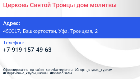 Церковь Святой Троицы, дом молитвы по адресу 450017, Башкортостан, Уфа, Троицкая, 2 в дальнейшем Организация, размещена в следующих категориях: