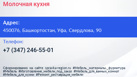 Молочная кухня по адресу 450076, Башкортостан, Уфа, Свердлова, 90 в дальнейшем Организация, размещена в следующих категориях: