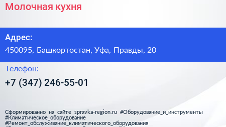 Молочная кухня по адресу 450095, Башкортостан, Уфа, Правды, 20 в дальнейшем Организация, размещена в следующих категориях: