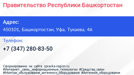 Правительство Республики Башкортостан по адресу 450101, Башкортостан, Уфа, Тукаева, 46 в дальнейшем Организация, размещена в следующих категориях: