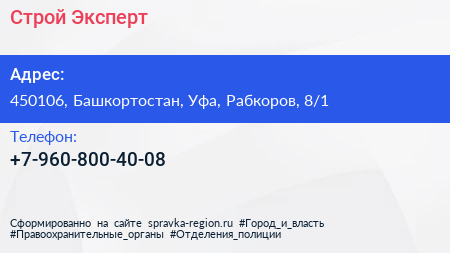 Строй Эксперт по адресу 450106, Башкортостан, Уфа, Рабкоров, 8/1 в дальнейшем Организация, размещена в следующих категориях: