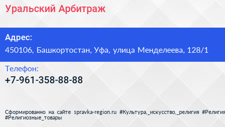 Уральский Арбитраж по адресу 450106, Башкортостан, Уфа, улица Менделеева, 128/1 в дальнейшем Организация, размещена в следующих категориях:
