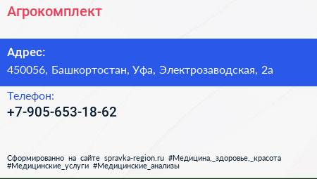 Агрокомплект по адресу 450056, Башкортостан, Уфа, Электрозаводская, 2а в дальнейшем Организация, размещена в следующих категориях: