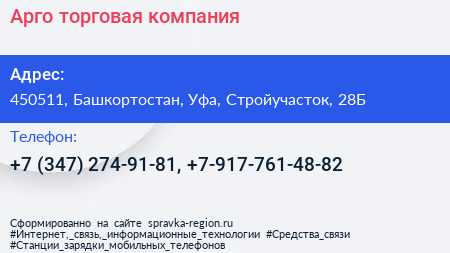 Арго, торговая компания по адресу 450511, Башкортостан, Уфа, Стройучасток, 28Б в дальнейшем Организация, размещена в следующих категориях: