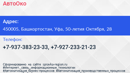 АвтоОко по адресу 450005, Башкортостан, Уфа, 50-летия Октября, 28 в дальнейшем Организация, размещена в следующих категориях: