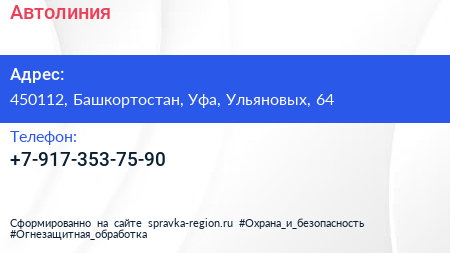 Автолиния по адресу 450112, Башкортостан, Уфа, Ульяновых, 64 в дальнейшем Организация, размещена в следующих категориях: