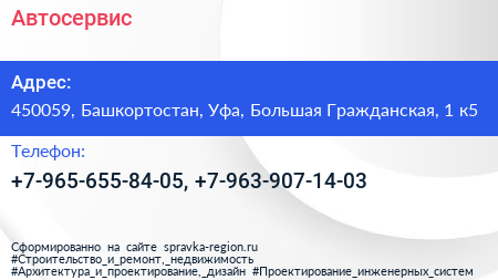 Автосервис по адресу 450059, Башкортостан, Уфа, Большая Гражданская, 1 к5 в дальнейшем Организация, размещена в следующих категориях: