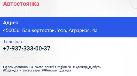 Автостоянка по адресу 450056, Башкортостан, Уфа, Аграрная, 4а в дальнейшем Организация, размещена в следующих категориях: