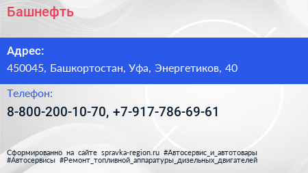 Башнефть по адресу 450045, Башкортостан, Уфа, Энергетиков, 40 в дальнейшем Организация, размещена в следующих категориях: