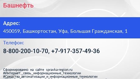 Башнефть по адресу 450059, Башкортостан, Уфа, Большая Гражданская, 1 в дальнейшем Организация, размещена в следующих категориях: