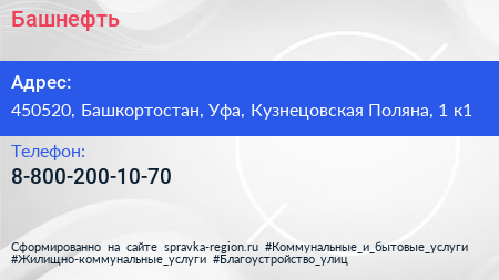 Башнефть по адресу 450520, Башкортостан, Уфа, Кузнецовская Поляна, 1 к1 в дальнейшем Организация, размещена в следующих категориях: