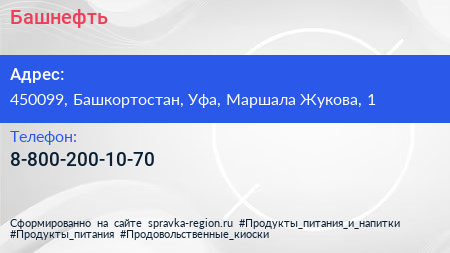 Башнефть по адресу 450099, Башкортостан, Уфа, Маршала Жукова, 1 в дальнейшем Организация, размещена в следующих категориях: