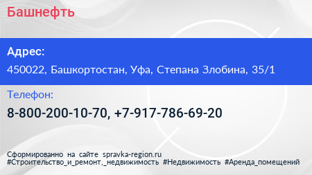 Башнефть по адресу 450022, Башкортостан, Уфа, Степана Злобина, 35/1 в дальнейшем Организация, размещена в следующих категориях: