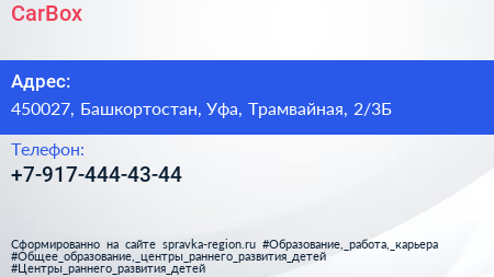 CarBox по адресу 450027, Башкортостан, Уфа, Трамвайная, 2/3Б в дальнейшем Организация, размещена в следующих категориях: