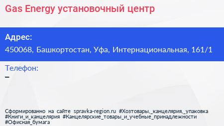 Gas-Energy, установочный центр по адресу 450068, Башкортостан, Уфа, Интернациональная, 161/1 в дальнейшем Организация, размещена в следующих категориях: