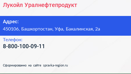 Лукойл-Уралнефтепродукт по адресу 450106, Башкортостан, Уфа, Бакалинская, 2а в дальнейшем Организация, размещена в следующих категориях: