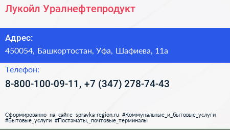 Лукойл-Уралнефтепродукт по адресу 450054, Башкортостан, Уфа, Шафиева, 11а в дальнейшем Организация, размещена в следующих категориях: