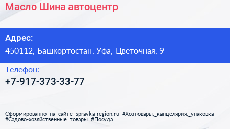 Масло & Шина, автоцентр по адресу 450112, Башкортостан, Уфа, Цветочная, 9 в дальнейшем Организация, размещена в следующих категориях: