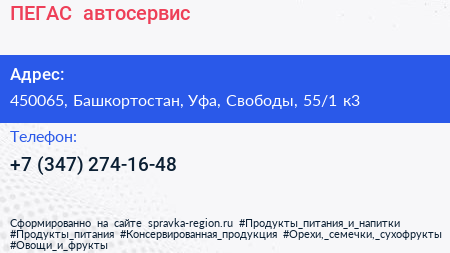 ПЕГАС+, автосервис по адресу 450065, Башкортостан, Уфа, Свободы, 55/1 к3 в дальнейшем Организация, размещена в следующих категориях: