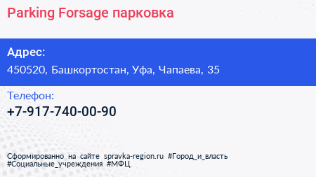 Parking Forsage, парковка по адресу 450520, Башкортостан, Уфа, Чапаева, 35 в дальнейшем Организация, размещена в следующих категориях: