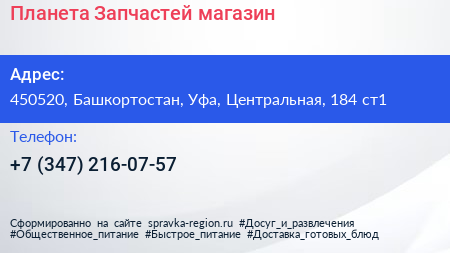 Планета Запчастей, магазин по адресу 450520, Башкортостан, Уфа, Центральная, 184 ст1 в дальнейшем Организация, размещена в следующих категориях: