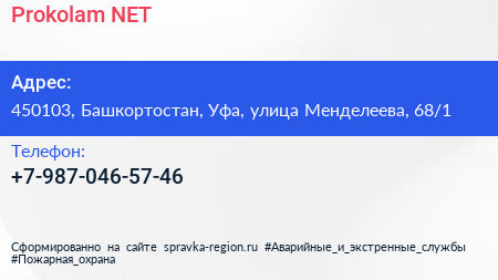 Prokolam.NET по адресу 450103, Башкортостан, Уфа, улица Менделеева, 68/1 в дальнейшем Организация, размещена в следующих категориях: