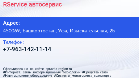 RService, автосервис по адресу 450069, Башкортостан, Уфа, Изыскательская, 2Б в дальнейшем Организация, размещена в следующих категориях: