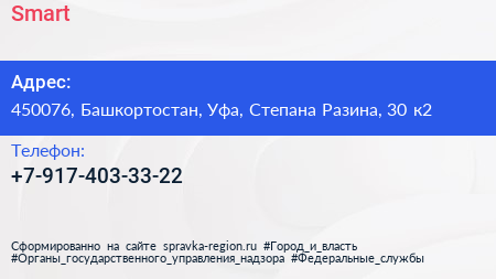 Smart по адресу 450076, Башкортостан, Уфа, Степана Разина, 30 к2 в дальнейшем Организация, размещена в следующих категориях: