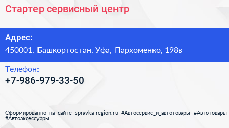 Стартер, сервисный центр по адресу 450001, Башкортостан, Уфа, Пархоменко, 198в в дальнейшем Организация, размещена в следующих категориях: