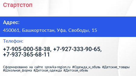 Стартстоп по адресу 450061, Башкортостан, Уфа, Свободы, 15 в дальнейшем Организация, размещена в следующих категориях: