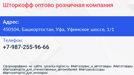 Шторкофф, оптово-розничная компания по адресу 450104, Башкортостан, Уфа, Уфимское шоссе, 1/1 в дальнейшем Организация, размещена в следующих категориях: