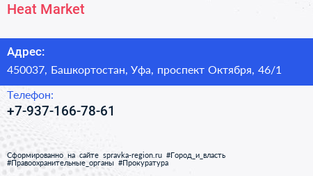 Heat Market по адресу 450037, Башкортостан, Уфа, проспект Октября, 46/1 в дальнейшем Организация, размещена в следующих категориях: