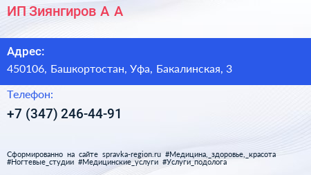 ИП Зиянгиров А.А. по адресу 450106, Башкортостан, Уфа, Бакалинская, 3 в дальнейшем Организация, размещена в следующих категориях: