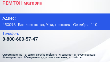 РЕМТОН, магазин по адресу 450098, Башкортостан, Уфа, проспект Октября, 110 в дальнейшем Организация, размещена в следующих категориях: