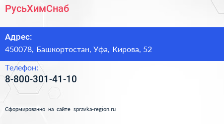 РусьХимСнаб по адресу 450078, Башкортостан, Уфа, Кирова, 52 в дальнейшем Организация, размещена в следующих категориях: