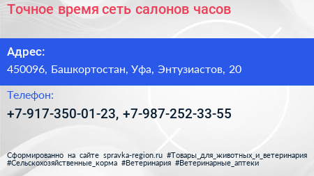 Точное время, сеть салонов часов по адресу 450096, Башкортостан, Уфа, Энтузиастов, 20 в дальнейшем Организация, размещена в следующих категориях: