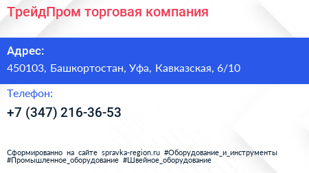 ТрейдПром, торговая компания по адресу 450103, Башкортостан, Уфа, Кавказская, 6/10 в дальнейшем Организация, размещена в следующих категориях: