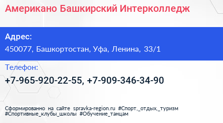 Американо-Башкирский Интерколледж по адресу 450077, Башкортостан, Уфа, Ленина, 33/1 в дальнейшем Организация, размещена в следующих категориях: