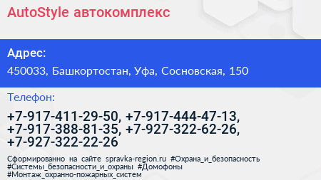 AutoStyle, автокомплекс по адресу 450033, Башкортостан, Уфа, Сосновская, 150 в дальнейшем Организация, размещена в следующих категориях:
