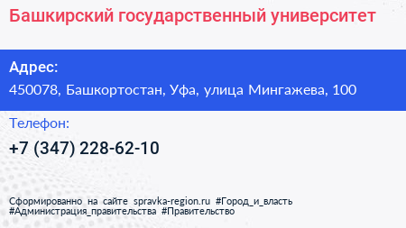 Башкирский государственный университет по адресу 450078, Башкортостан, Уфа, улица Мингажева, 100 в дальнейшем Организация, размещена в следующих категориях: