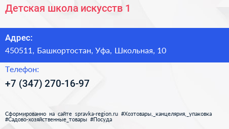 Детская школа искусств №1 по адресу 450511, Башкортостан, Уфа, Школьная, 10 в дальнейшем Организация, размещена в следующих категориях: