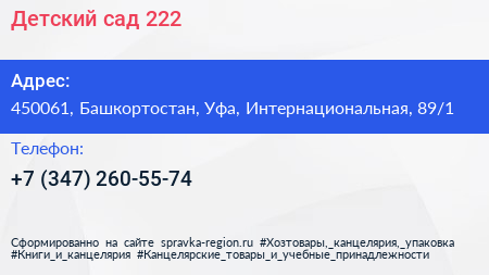 Детский сад №222 по адресу 450061, Башкортостан, Уфа, Интернациональная, 89/1 в дальнейшем Организация, размещена в следующих категориях: