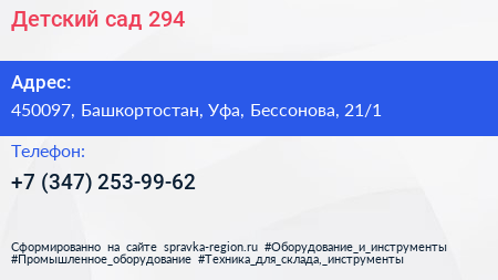 Детский сад №294 по адресу 450097, Башкортостан, Уфа, Бессонова, 21/1 в дальнейшем Организация, размещена в следующих категориях: