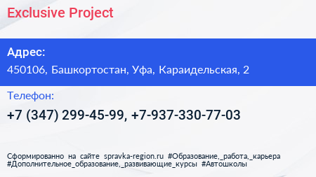 Exclusive Project по адресу 450106, Башкортостан, Уфа, Караидельская, 2 в дальнейшем Организация, размещена в следующих категориях: