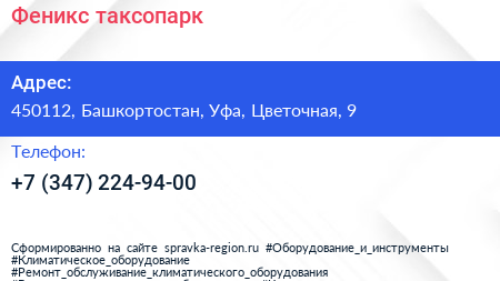 Феникс, таксопарк по адресу 450112, Башкортостан, Уфа, Цветочная, 9 в дальнейшем Организация, размещена в следующих категориях: