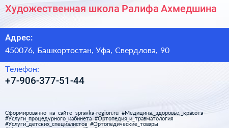 Художественная школа Ралифа Ахмедшина по адресу 450076, Башкортостан, Уфа, Свердлова, 90 в дальнейшем Организация, размещена в следующих категориях: