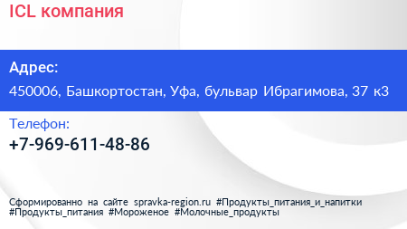 ICL, компания по адресу 450006, Башкортостан, Уфа, бульвар Ибрагимова, 37 к3 в дальнейшем Организация, размещена в следующих категориях: