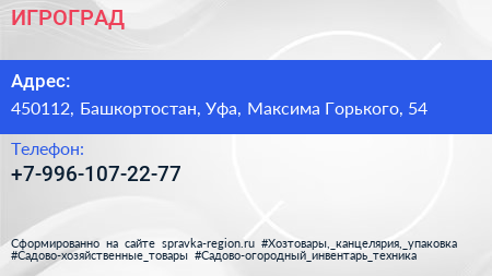 ИГРОГРАД по адресу 450112, Башкортостан, Уфа, Максима Горького, 54 в дальнейшем Организация, размещена в следующих категориях: